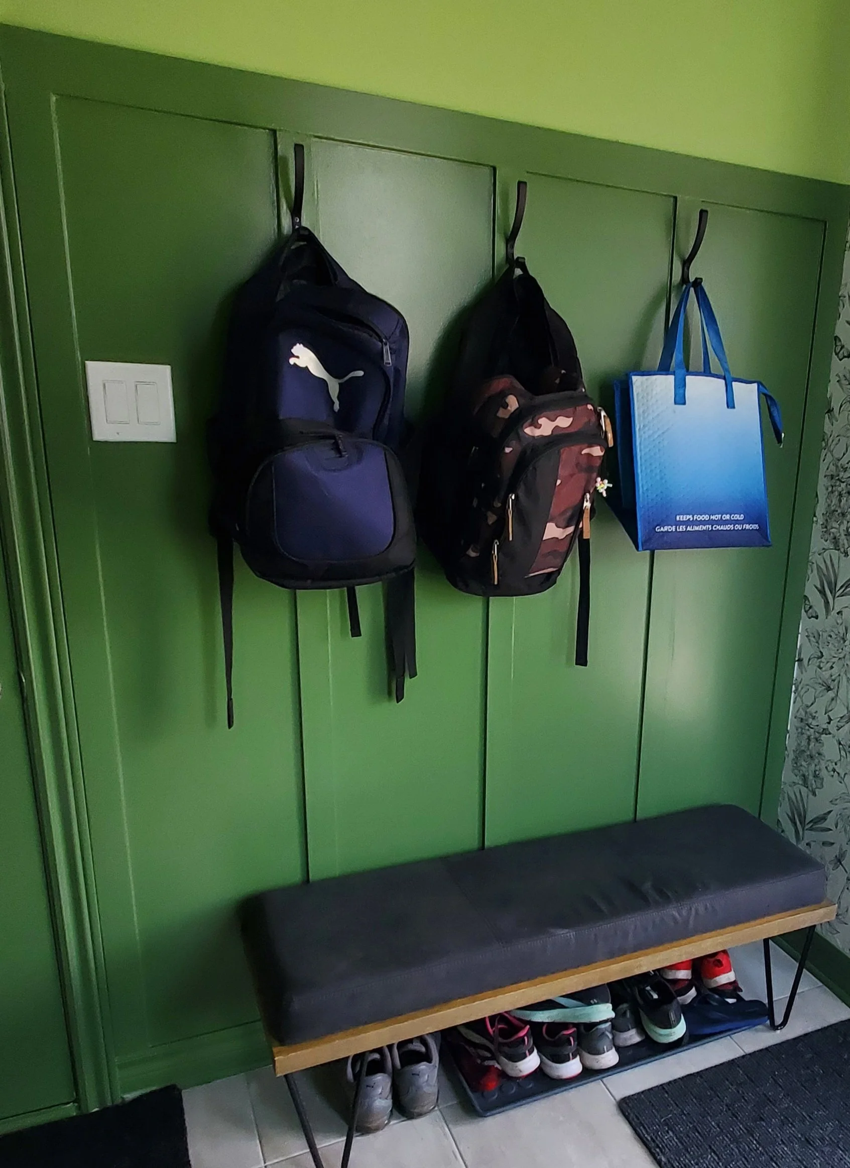 Install hooks where backpacks land.